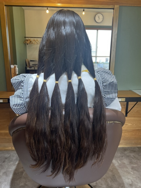 切った髪の毛はご自身の判断で寄付したい団体へ送って下さい(^^)