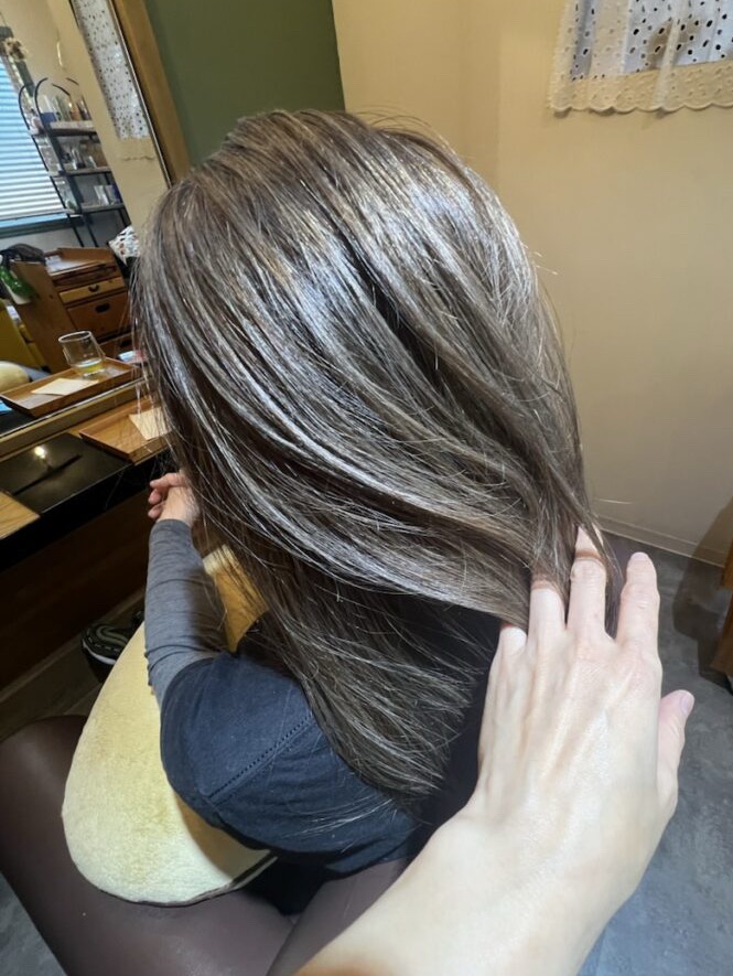 落ち着いたカラーだと暗く見えてしまうので一度ベースを明るくしてから落ち着いたカラーを入れると透明感があり素敵な色になります✨