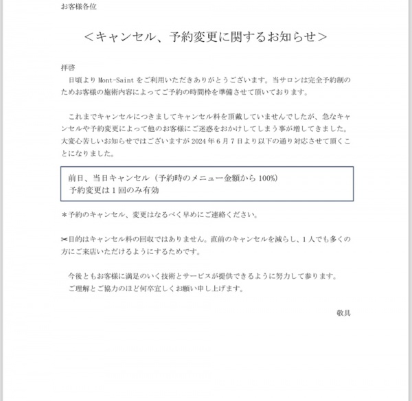 | 前髪カット | ¥1,000 |